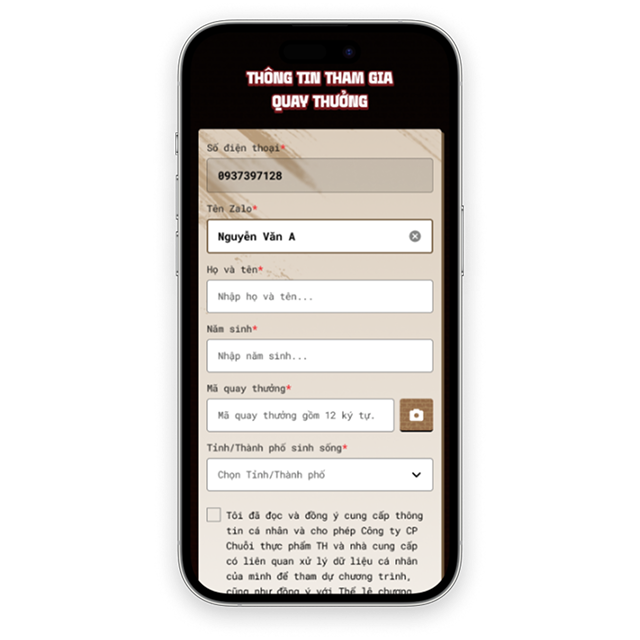 ĐIỀN THÔNG TIN VÀ MÃ QUAY THƯỞNG